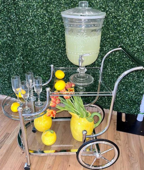 Our Amalie champagne wall is a 5-tier stemware display stand, holding a total of 40 glasses. Whether you’re looking to create a sleek display for welcome drinks or have bubbly be part of the main attraction, our Amalie wall is sure to do the trick.